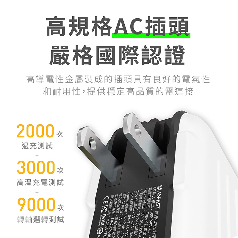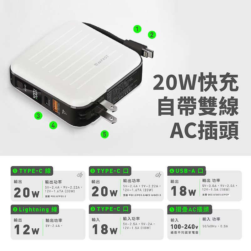 - 高規格AC插頭,支持100-240V全球範圍使用