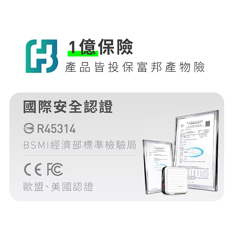 - 一億保險+多項認證:BSMI、歐盟、美國認證