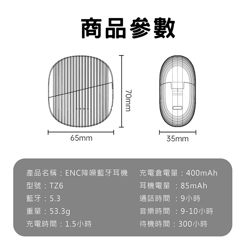 自帶充電艙,可給耳機充電3 - 4次